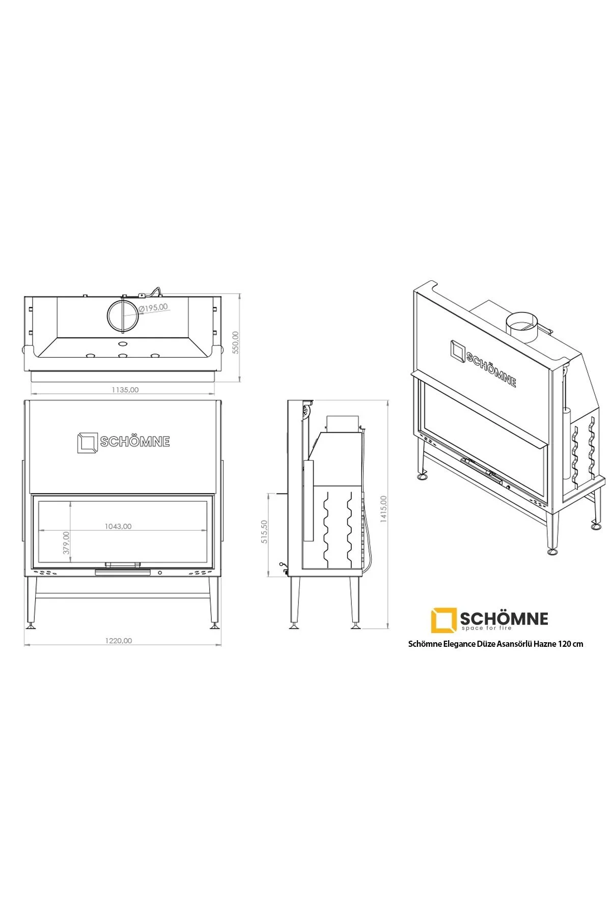 120 cm Düz Asansörlü Şömine Haznesi