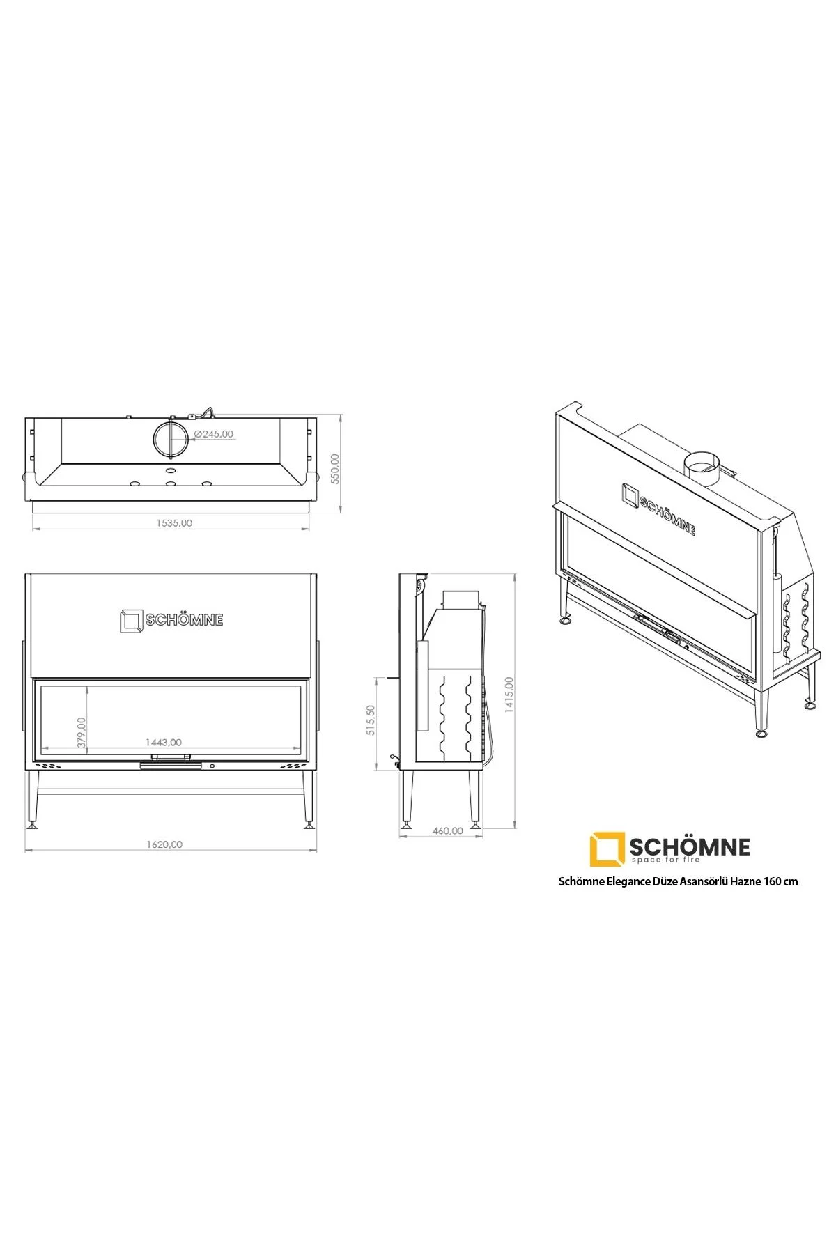 160 cm Düz Asansörlü Şömine Haznesi