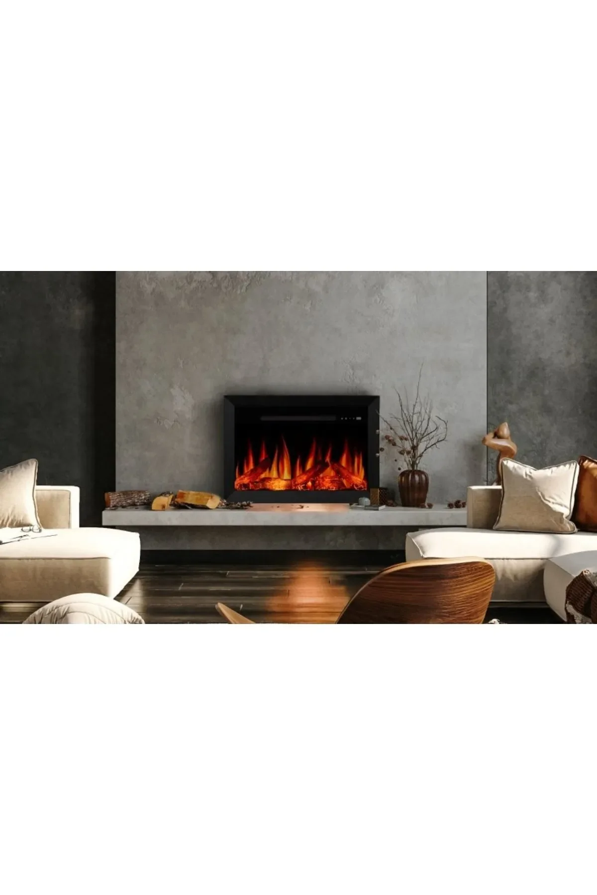Pagla 200 Elektrikli Şömine – Isıtıcılı, Cam Çerçeveli, Tek Renkli